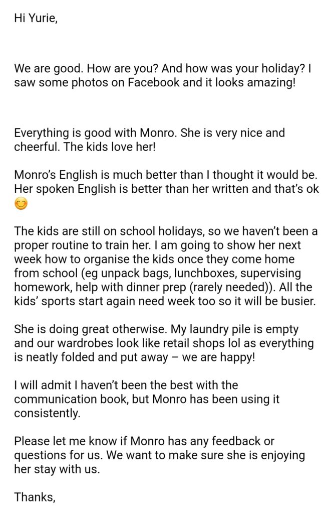 Monro Monro was staying with the lovely Brisbane family for 2 months. They had a wonderful time together.
